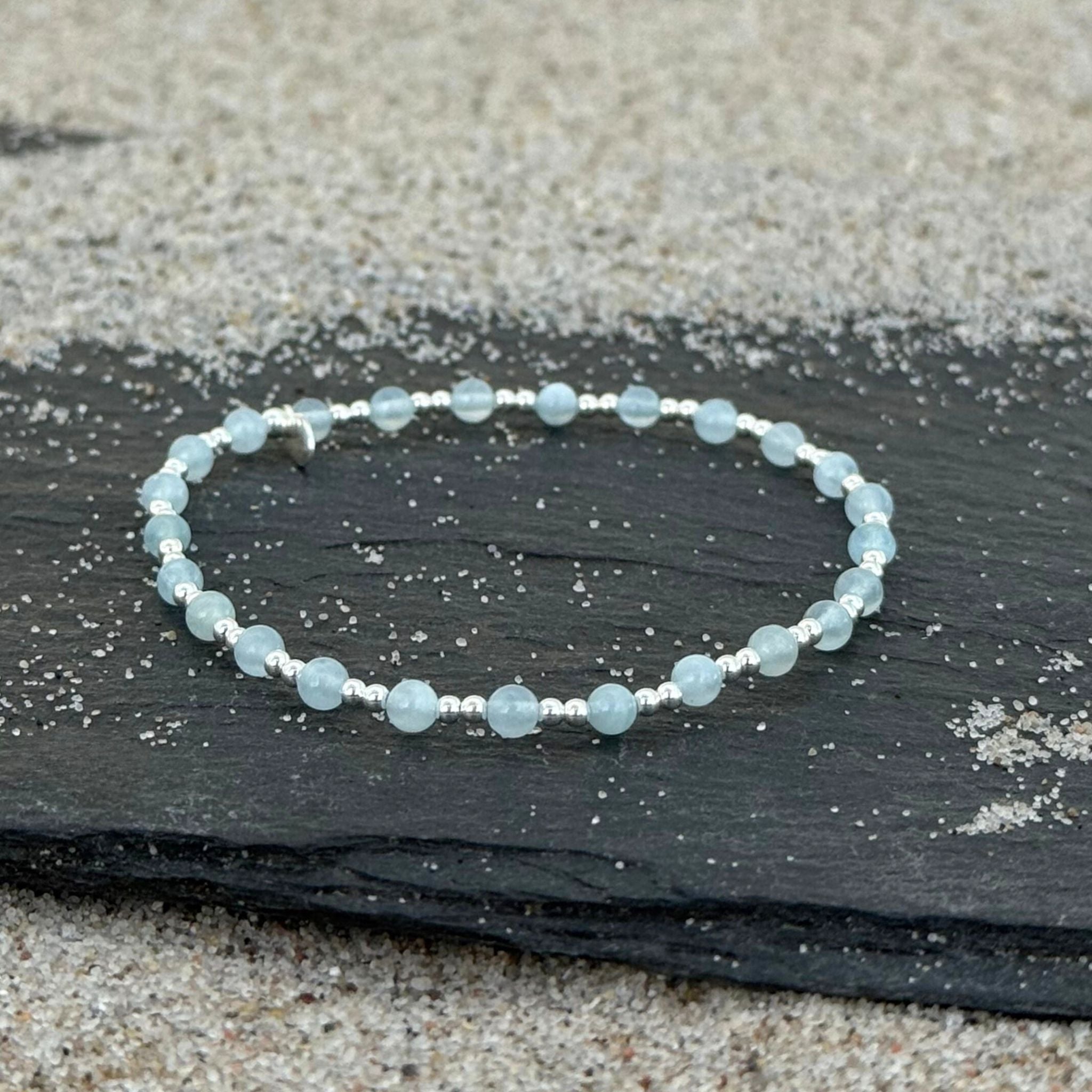 Stretch-Armband mit Aquamarin & 925er Silber – Handgefertigt