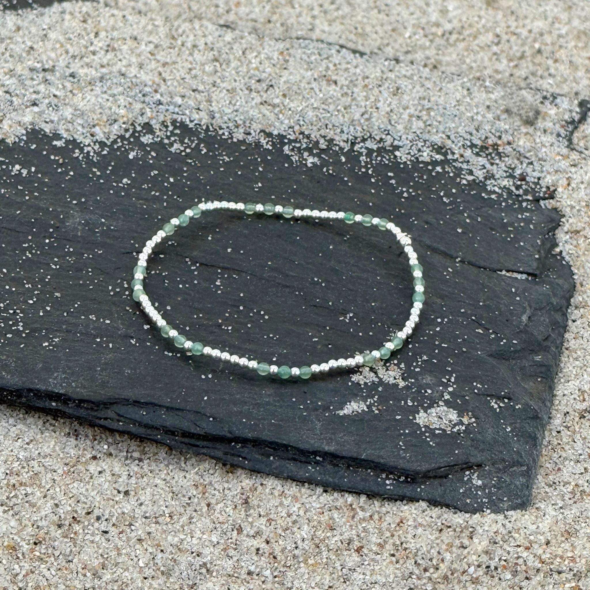 Stretch-Armband mit grüner Jade & 925er Silber – Handgefertigt
