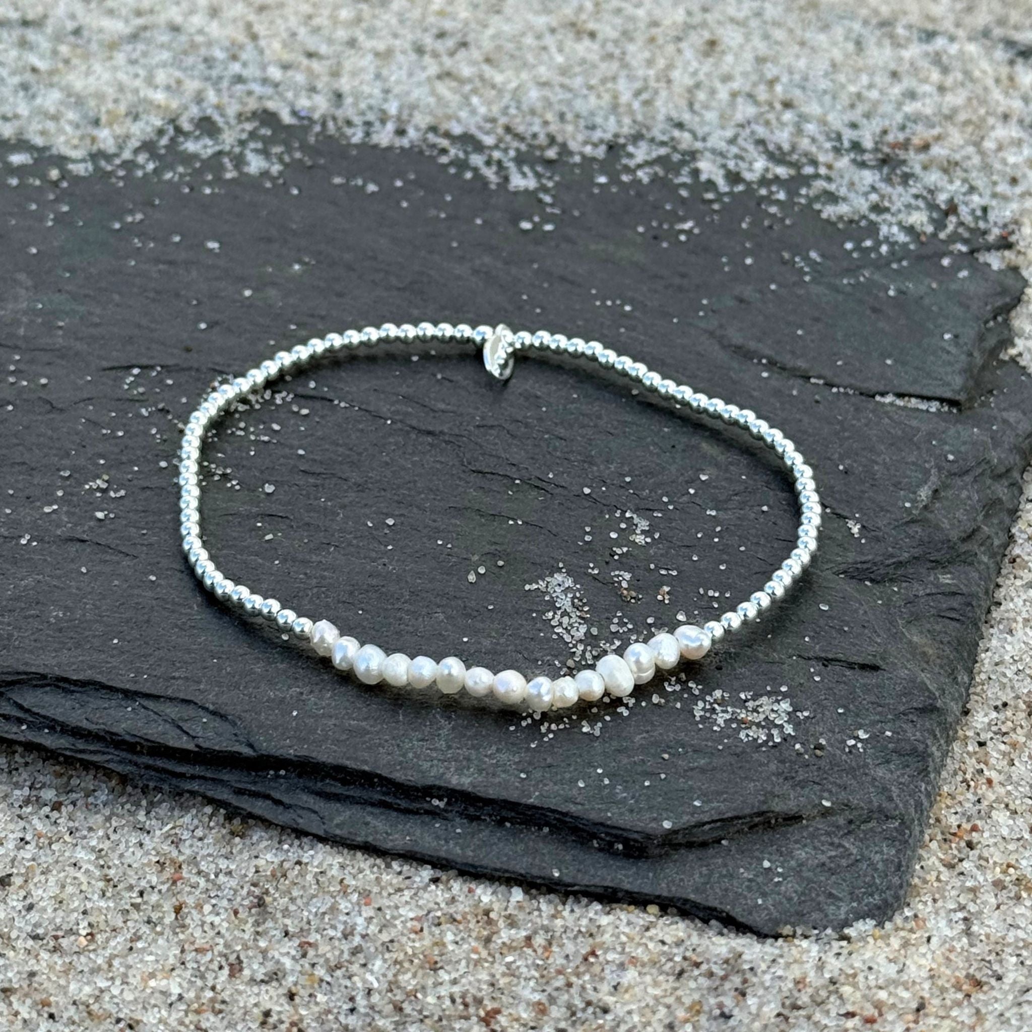 Stretch-Armband mit kleinen Süßwasserperlen & 925er Silber – Handgefertigt